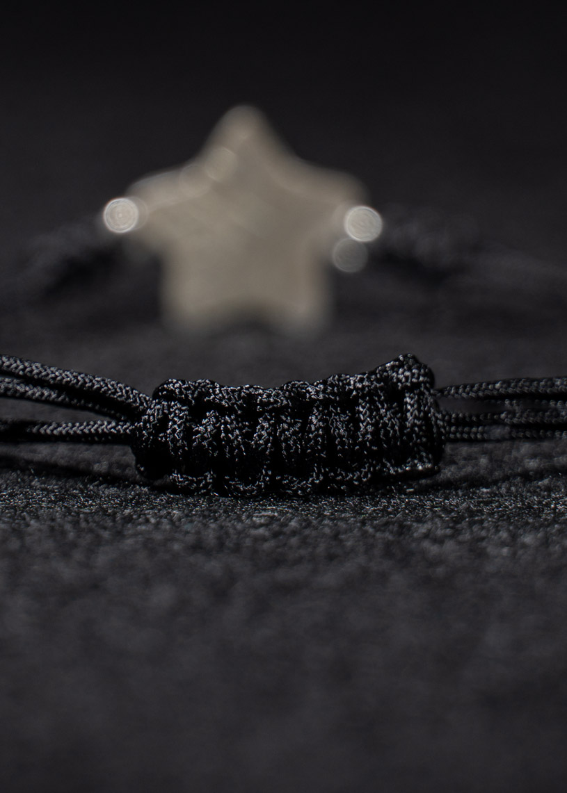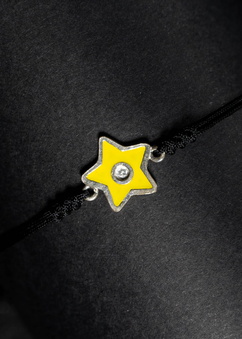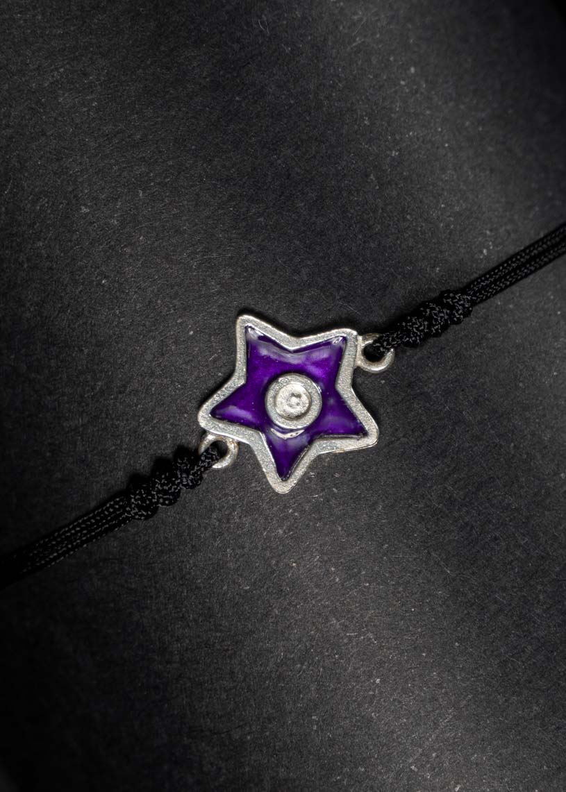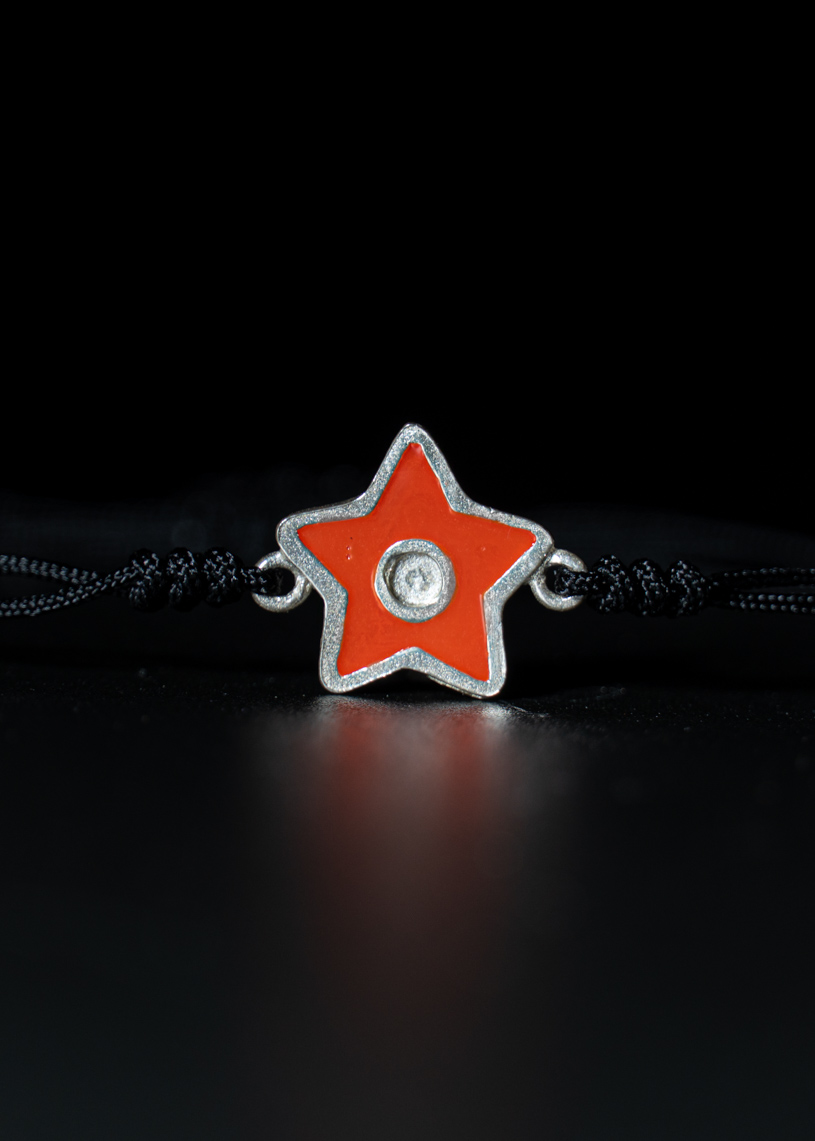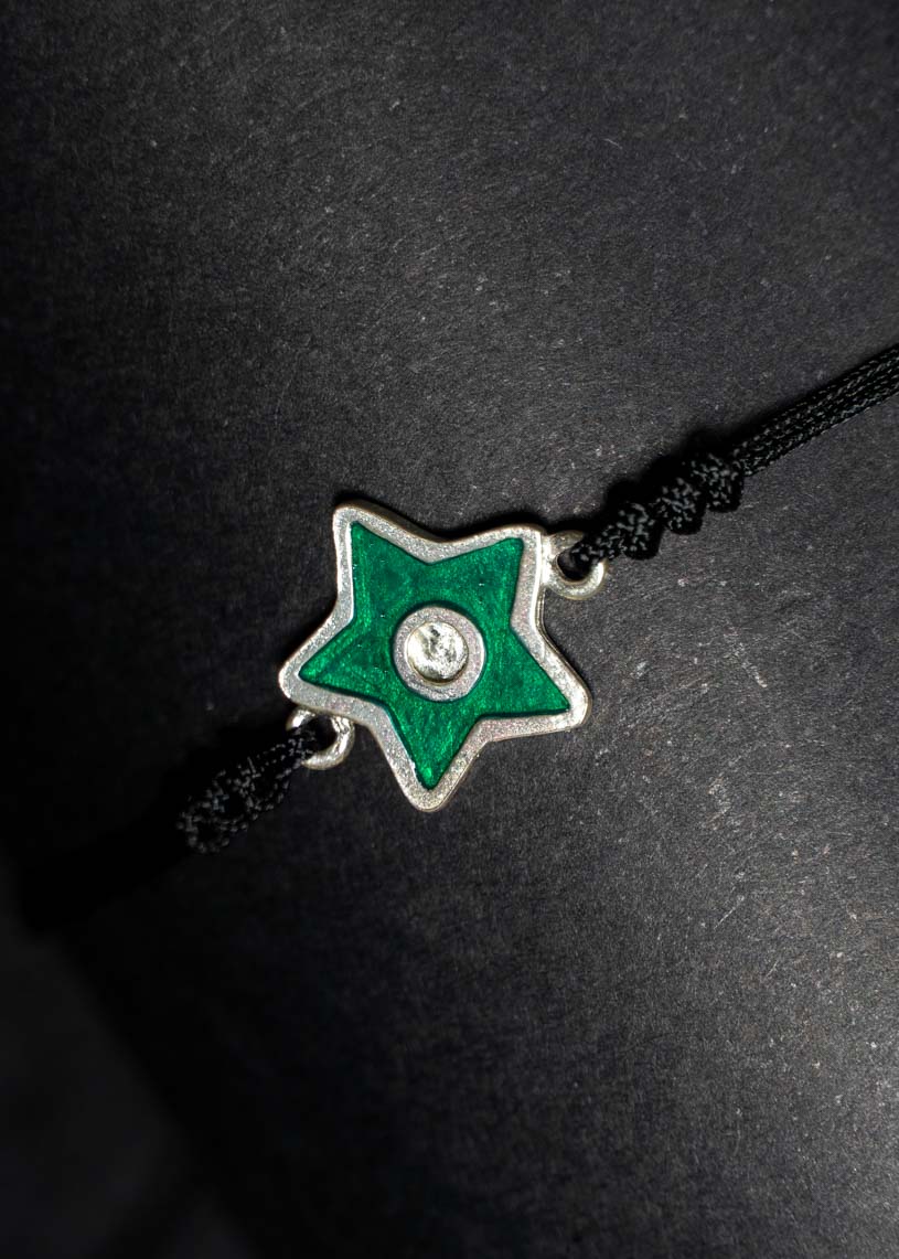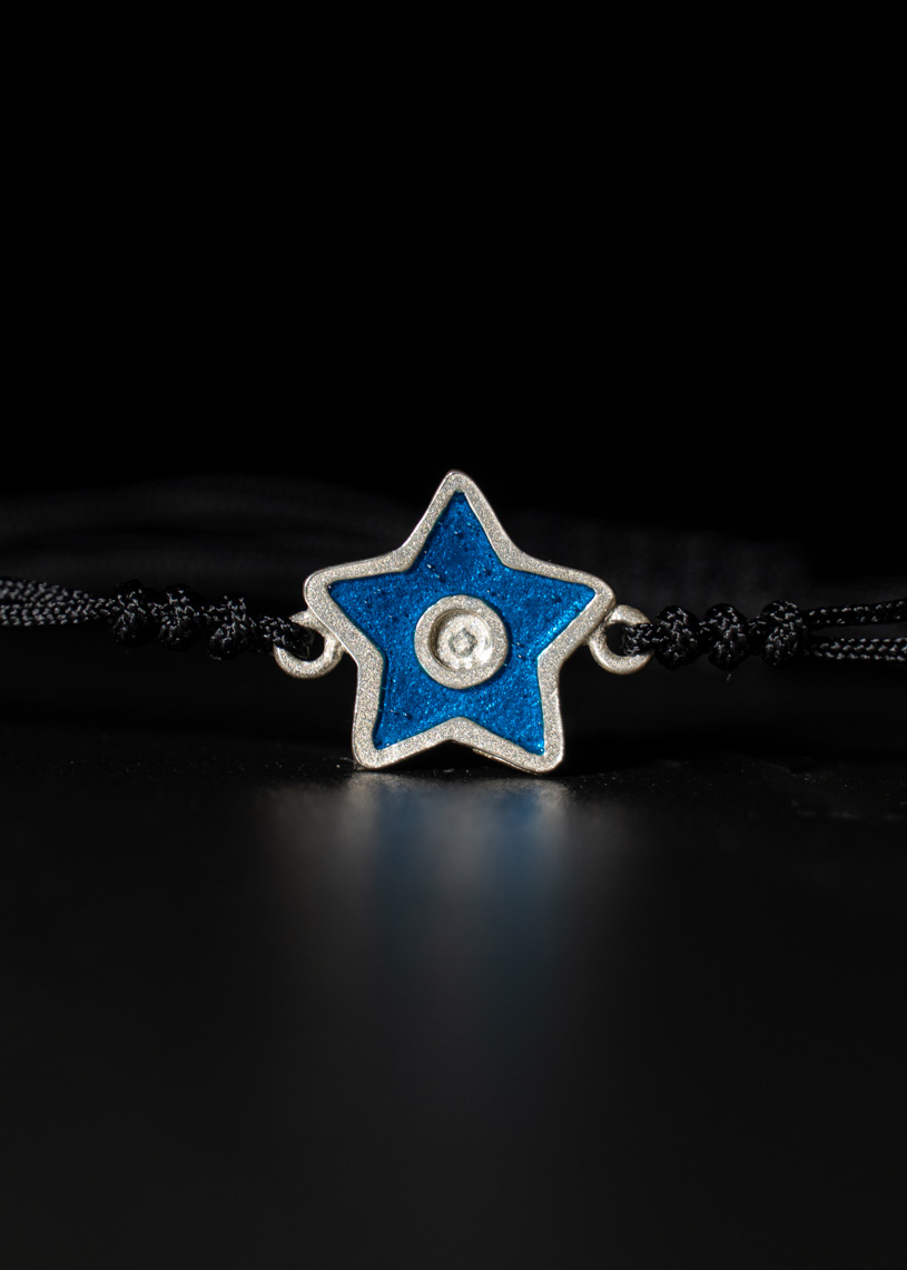 La estrella central de 14 mm de diámetro, realizada en Plata de ley 925 y esmalte de color, es el elemento protagonista de esta pulsera artesanal. Su diseño incluye tres nudos embellecedores en los extremos de la estrella y un cierre corredizo en macramé, que permite un ajuste cómodo y seguro a tu muñeca. En los extremos del cordón de hilo encerado, pequeñas bolitas decorativas completan un acabado cuidado. Ligera, resistente al agua y pensada para acompañarte todo el verano, esta joya hecha a mano en Menorca te conecta con una historia y una tradición.