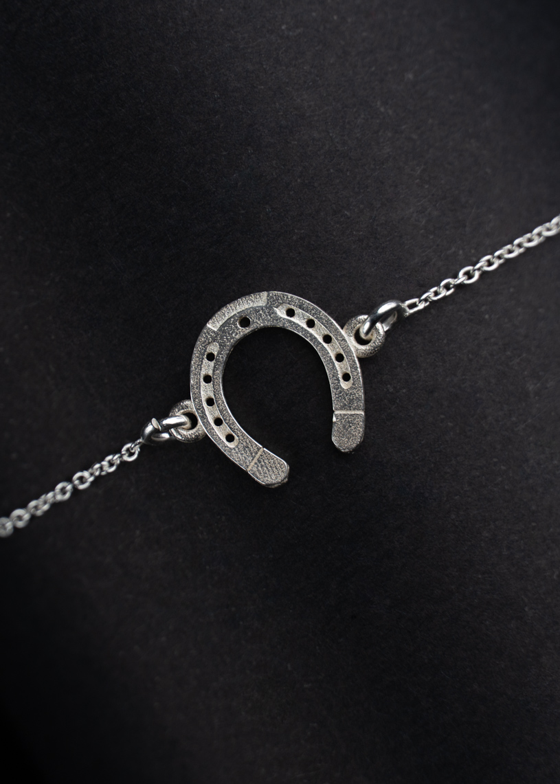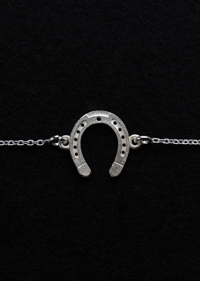 Inspirada en la tradición ecuestre de Menorca y en la esencia del Camí de Cavalls, esta pieza evoca el espíritu libre y aventurero de quienes recorren la isla a su ritmo. La herradura, de líneas suaves y detalles marcados, está realizada artesanalmente y mide 10 mm de largo y 10 mm de ancho. Va unida a cadena de plata, con cierre de anilla ajustable que permite adaptarla cómodamente a la muñeca. Su diseño es ligero e ideal para llevar a diario o combinar con otras joyas.