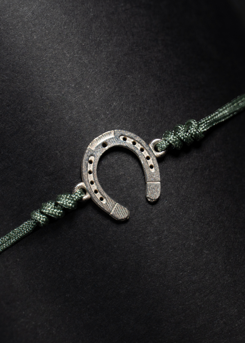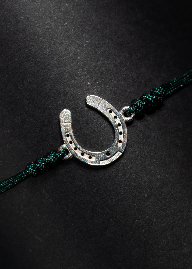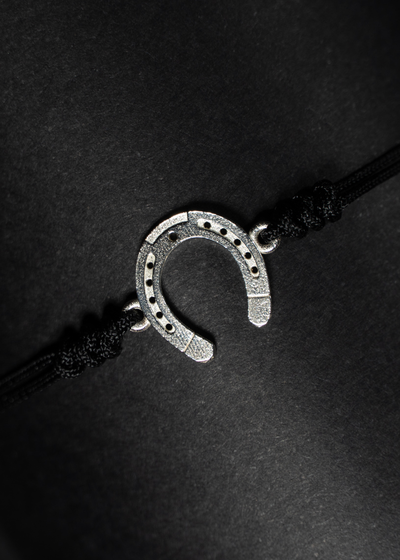 La pieza central es una herradura elaborada a mano en Plata de Ley 925, que mide 10 mm de largo y 10 mm de alto, símbolo de protección y buena suerte. El cordón de hilo encerado incluye un cierre ajustable de macramé, que permite adaptarlo fácilmente a la muñeca para un ajuste cómodo y seguro. Los extremos están rematados con bolitas decorativas, que realzan el diseño con un toque distintivo y delicado. Además, puedes elegir el color del hilo para personalizarla a tu gusto.